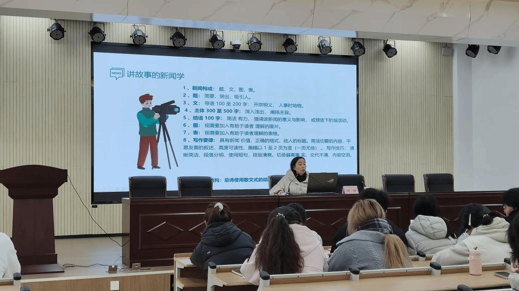 培训围绕“新闻撰写”“活动拍摄”与“经验传承”三大主题展开,由何辞、吕明明两位老师及22级优秀毕业生贺文俊同学主讲。何辞老师以“新闻稿撰写”为重点,系统讲授了新闻写作的基本理论与实用技巧。她从标题拟定、结构搭建入手,结合学生工作实际场景,深入解析“倒金字塔”结构的运用方式,并通过常见错误案例,强调新闻的真实性、准确性与规范性,助力同学们夯实文字表达能力。吕明明老师聚焦“活动拍摄技巧”,通过大量实例生动讲解了拍摄前的准备、角度选择与设备设置。他提出“全景抓氛围、中景记过程、特写显细节”的拍摄思路,指导同学们如何用镜头清晰记录活动、突出人物、传递现场情绪,并特别提醒应注重画面的整洁与真实还原。在优秀毕业学生干部经验分享环节,贺文俊同学结合自身成长经历,与学弟学妹们交流了平衡工作与学习、在服务集体中锻炼自我的心得体会。他鼓励大家珍惜学生工作平台,在实践中锤炼务实作风,在奉献中涵养担当精神,实现个人与集体的共同进步。